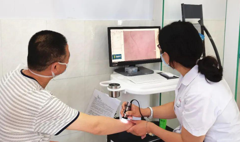 皮膚鏡,也稱為“皮膚科醫生聽診器”,是一種非侵入性技術,用于在體內觀察皮膚表面和下方的微觀結構特征。簡單地說,皮膚鏡是一個放大倍數更高的放大鏡,可以捕捉圖像進行觀察和分析。近年來,隨著中國皮膚科醫生和醫學影像專家的大力推廣,皮膚內窺鏡在各級醫院逐漸普及?;蛘咴谄つw鏡下評估疾病活動性,如毛囊周圍的色素沉著、皮膚病變的邊緣、色素網絡結構、衛星現象以及山艾樹的外觀、微Koebner現象和彗星尾狀現象,為評估白癜風的疾病活動性提供依據。為精確選擇組織活檢取樣部位提供依據。此外,一些治療方法也可以結合使用以提高療效。